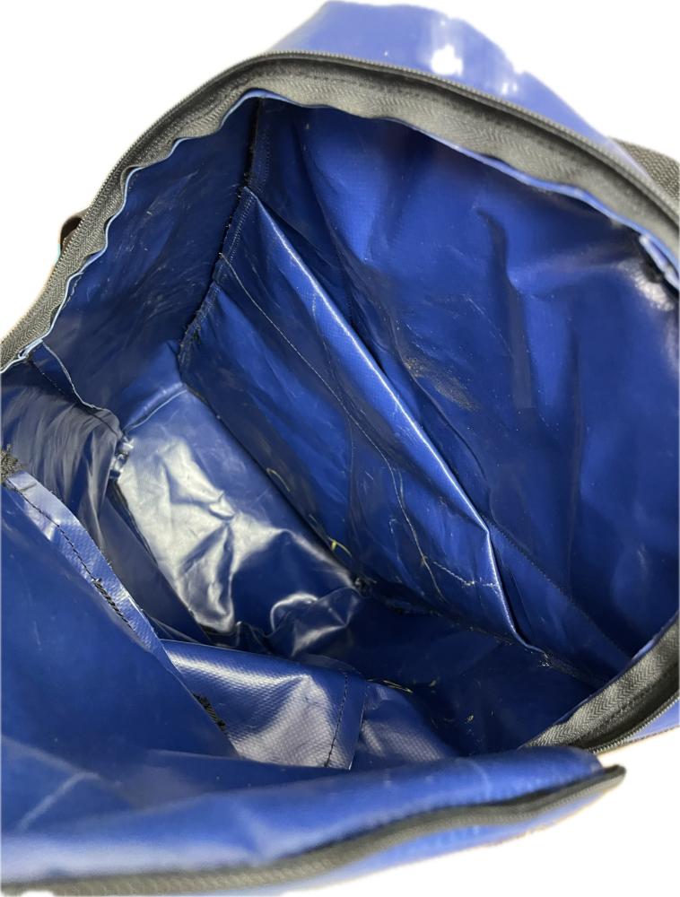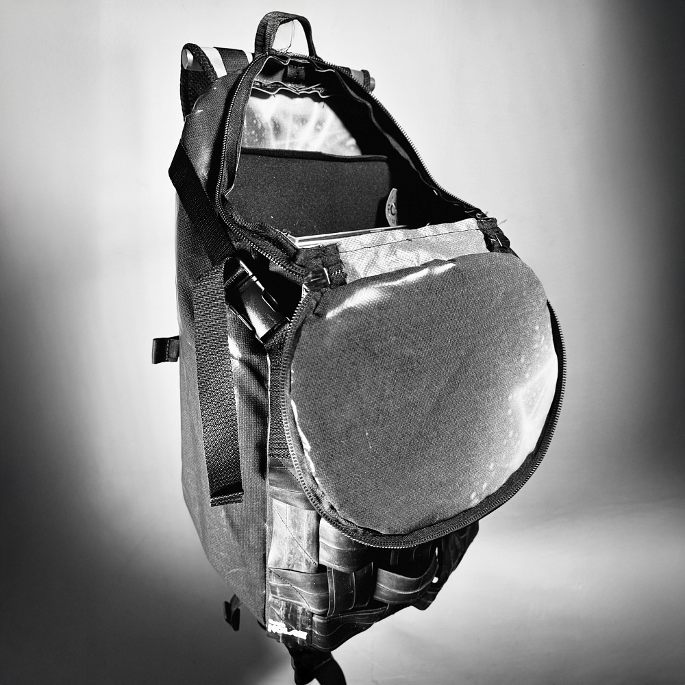 Backpack is made from used truck tarp  with brands motto that every material deserves a second chance :-)