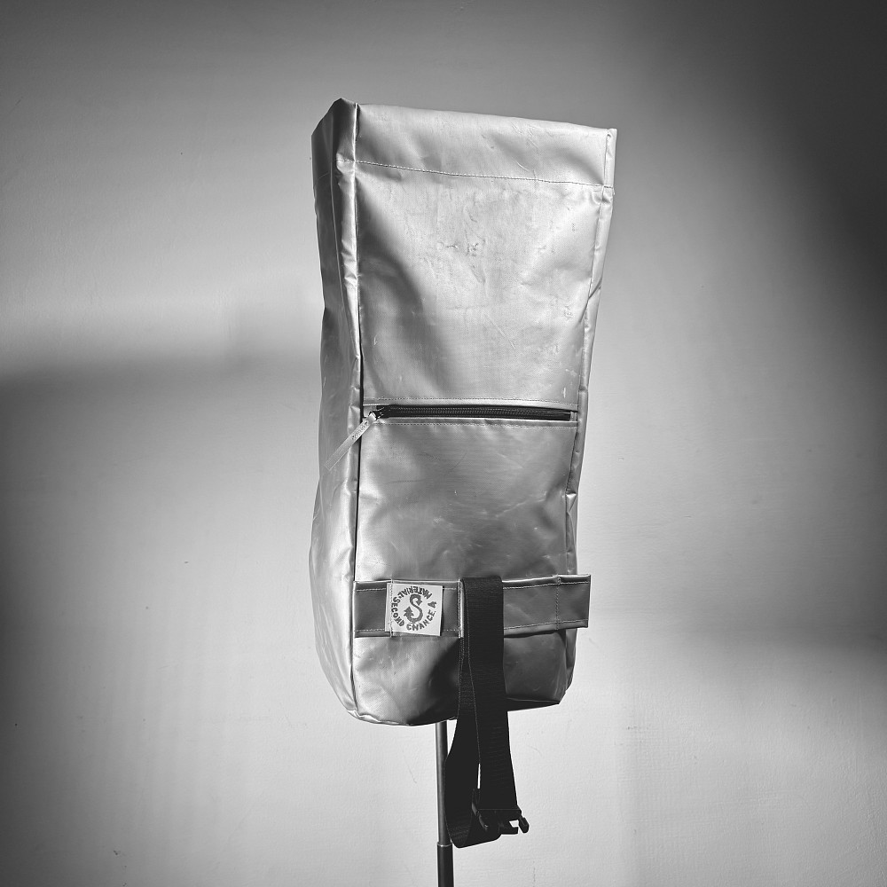Backpack is made from used truck tarp with brands motto that every material deserves a second chance :-)