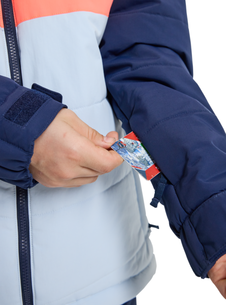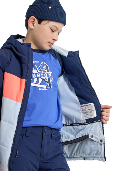 - Room-to-Grow system extends the length of the sleeves by 1.5in to keep up with growth spurts; Ergonomic water-repellent waist gaiter with jacket-to-pant interface; Drop hem for extended length and added coverage; Glove loops; Ticket O-ring; Adjustable cuffs